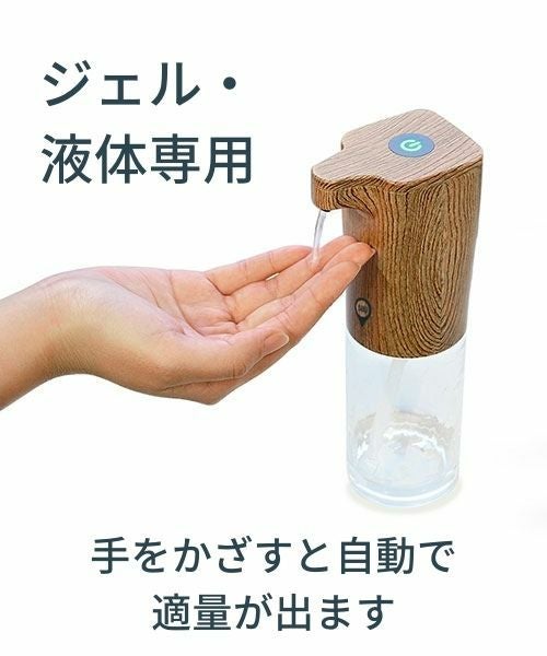 手をかざすだけで、自動で出てくるジェル・液体専用のディスペンサーです。 ハンドソープ、食器用洗剤、除菌ジェルに使用できます。 電池式&生活防水対応で、キッチンや洗面所、玄関でも安心してご使用できます。 ●ジェル・液体専用です。ハンドソープ、食器用洗剤、除菌ジェルにお使いいただけます。 ●単4乾電池×4本(別売) ●容量:300 ml 泡タイプ用はこちら