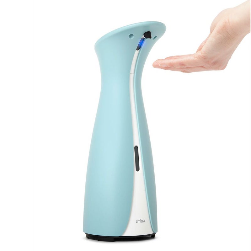 ※青いライトが点灯し、モーター音が聞こえても石鹸が出ない場合は、石鹸を別の容器に移してから沸騰していないお湯を入れてください。冷めるまで5~10分待ち、手をモーションセンサーの前に出して、水がよく流れるまで繰り返します。その後、水を抜き洗剤を補充してください。