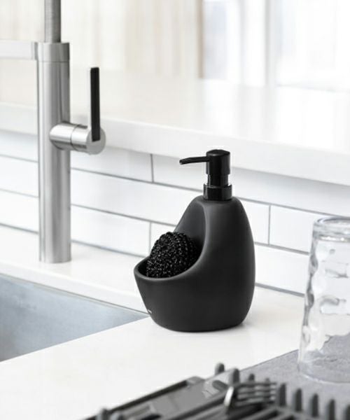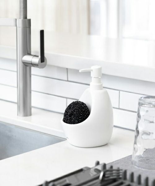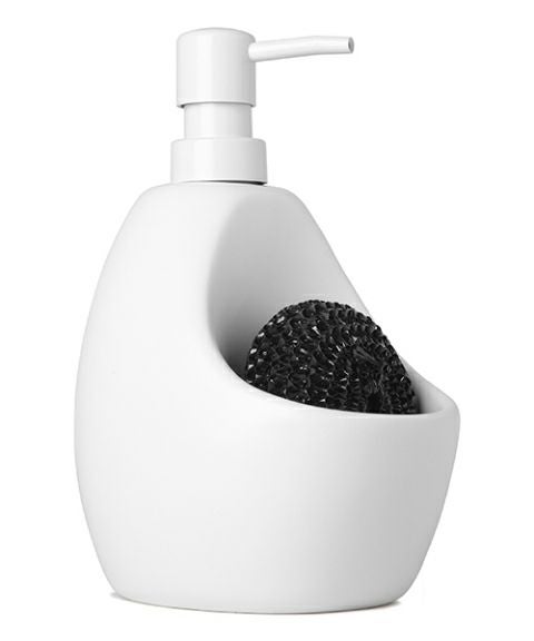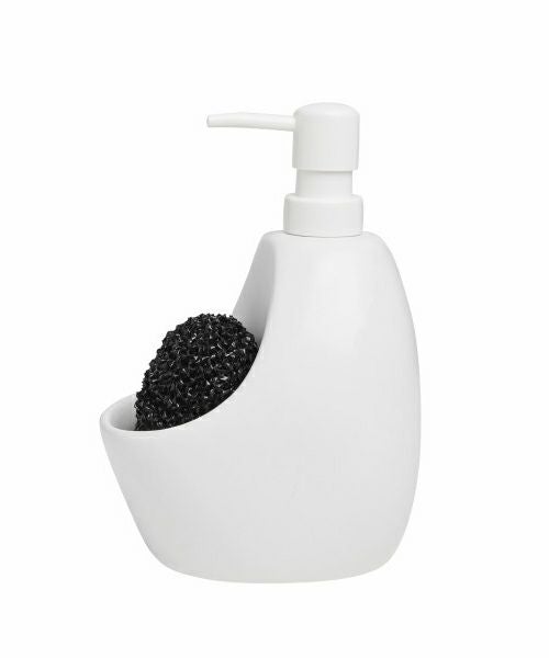 スクラビーホルダーの付いた陶器製のソープポンプ。ソープのすぐ近くにスクラビーを置いておけるので便利です。陶器製なので、汚れがついても洗浄してきれいにすることができます。シンプルなデザインが人気の商品です。 付属品:スクラビー デザイン:SATIVA TURNER