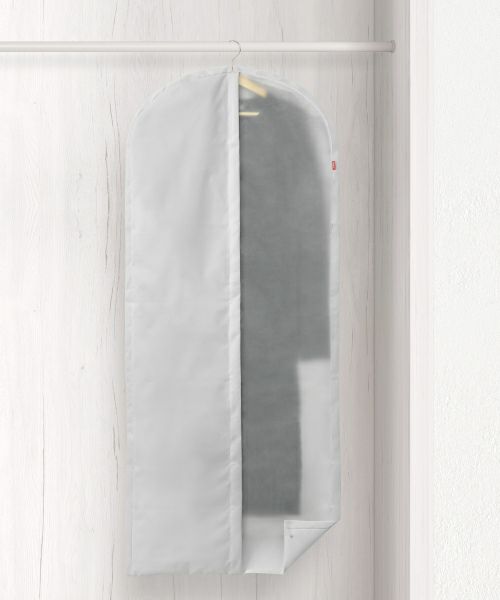 半分が半透明なので中の衣類が見える衣類カバーです。サイズをL→Sサイズに調整可能です。マチ付きで、衣服を入れやすい。通気性がよく、衣類を守ります。※商品名はホワイトですが、実際のカラーはライトグレーとなります。