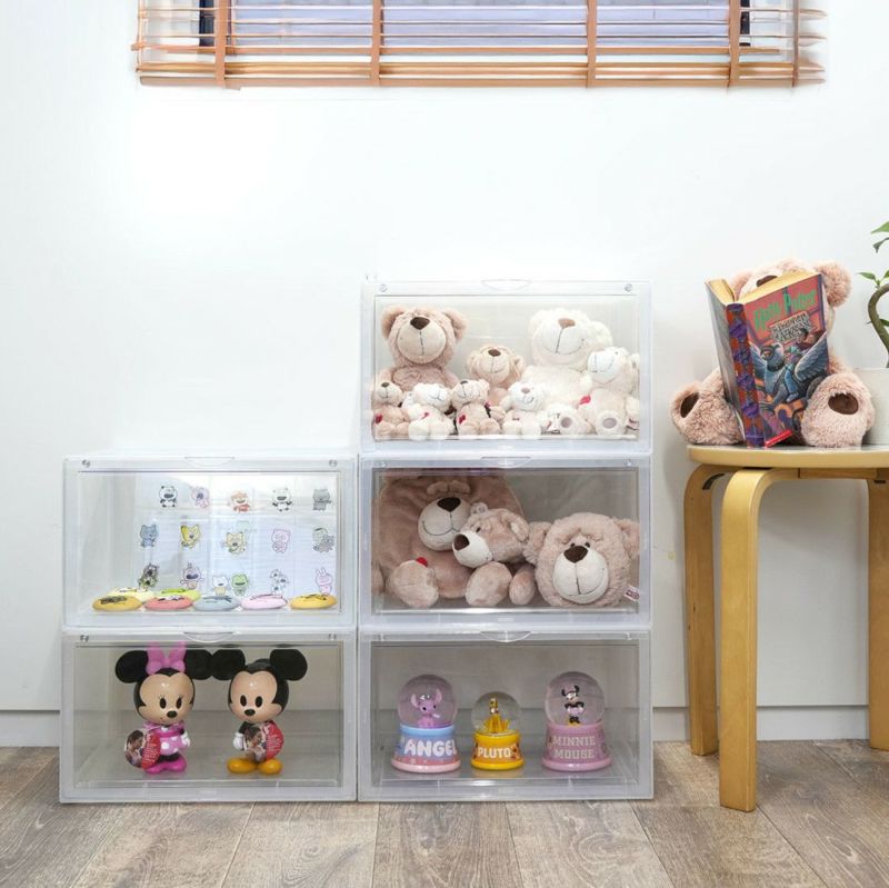 大人気アイテム!まとめ買いはこちら! 組み立て式ディスプレイボックス。 お気に入りを集めたコレクションケースに。 グッズを飾ってディスプレイボックスに。 中身が見えやすい透明度の高いフタはマグネット付きでパチッと閉じられます。 対応サイズ:31cmまで対応(靴の形状により 入らない場合があります。) ※こちらは『ブラック』の6個セットになります。 外寸サイズ:W36×D29×H22cm 内寸サイズ:W34×D26×H18.5cm