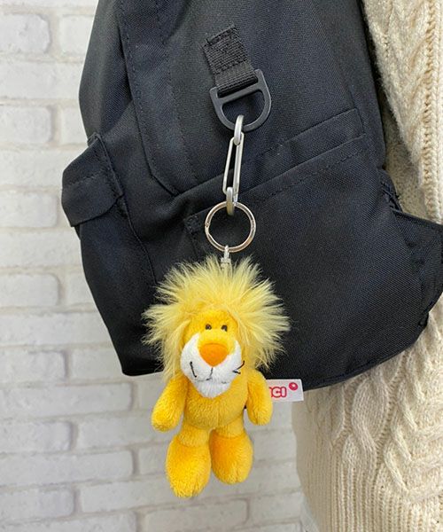 こちらは、ぬいぐるみの肌触りをそのまま残したサニーライオンのキーリングです。おしりには太陽のマークの刺繍入りです♪