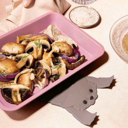 ねこちゃんが驚いてシャーっとなっているようなこのアイテムは、実は鍋敷きなのです! ちょっと可哀想ですが、ねこちゃんの背中のところにお鍋を敷くと、ぺっちゃんこになります! 使用しないときはシャーっとしているまま置いておくのがとっても可愛い!