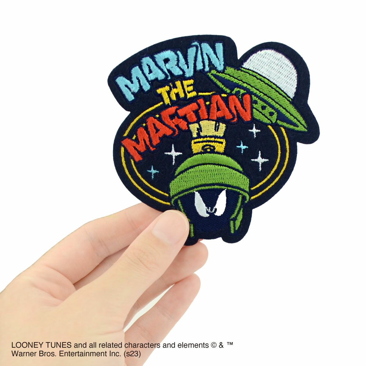 大きくて表情豊かな目、ローマ兵のようなかわいいコスチューム、そしてちょっと訛った喋り方がチャームポイント「マービンザマーシャン」。 宇宙的ユニークな観点で物事を見つめ、行動はいつも大胆です。 好きなところにペタッと貼って気軽に楽しめるシールみたいな ワッペンが登場! アイロンをかければ布にしっかりくっつく2WAY仕様♪ 対象年齢6歳以上