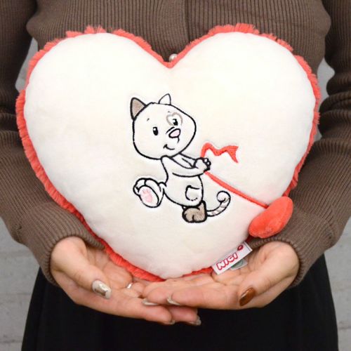 こちらは、ラブキャット 26x22cmのハート型クッションです。