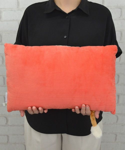 こちらは、ぬいぐるみの肌触りをそのまま残した、ウシ&ヒヨコの43cm×25cmのクッションです。
