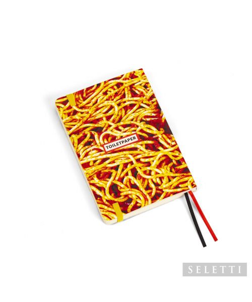 イタリアのデザイン会社「SELETTI」とマウリッツィオ・カテラン(アーティスト)&ピエルパオロ・フェラーリ(写真家)の2人が作ったヴィジュアル中心のアート誌「TOILETPAPER」のコラボレーションで、他にはないブラックユーモアたっぷりのシリーズにノートが登場。横罫ページで使いやすく、ゴムバンド付きなので持ち運びの時もカバンの中などで勝手にノートが開いてしまう心配もありません