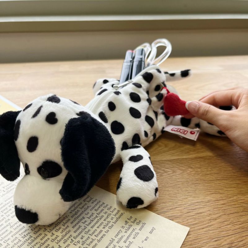 いつもフレンドリーなゴールデンレトリバー、小さいけど勇敢なダックスフント、甘えん坊のダルメシアンの三匹は、子犬の頃からいつも一緒。たまにケンカもするけれど、いつの間にか仲直り。お化け屋敷やジェットコースターだって、三匹一緒ならへっちゃらさ! こちらは ダルメシアンのフィギュアペンポーチです。 ペンポーチとしてはもちろん、コスメやお菓子などを入れて、ギフトにしても喜ばれること間違いなしの万能アイテム。