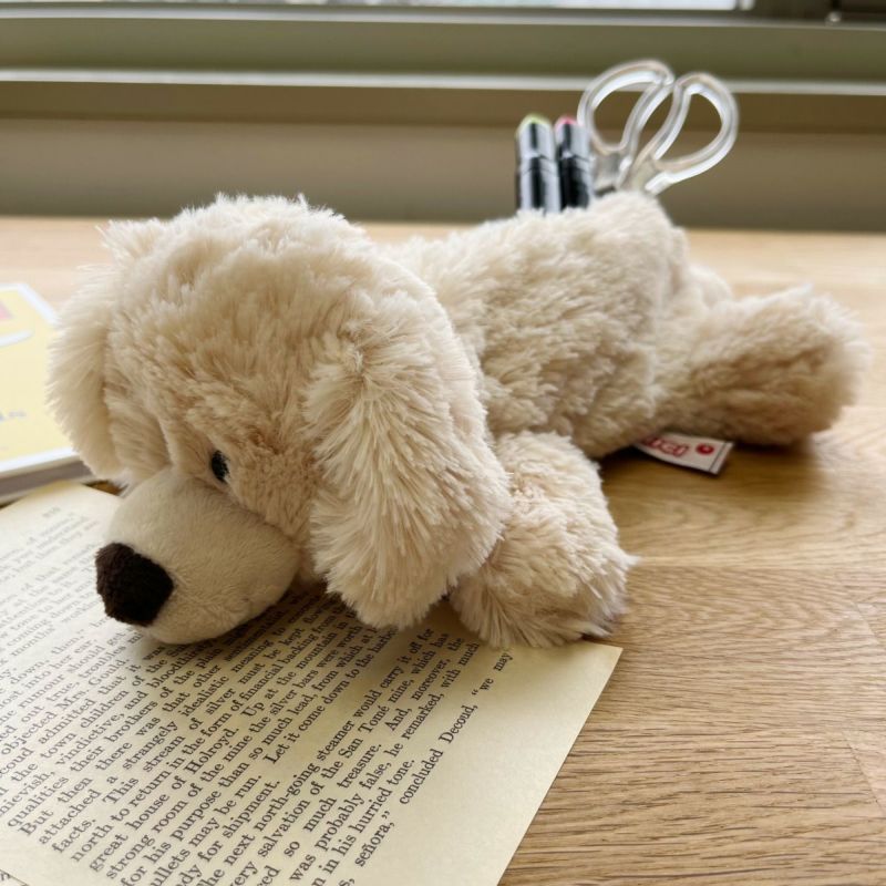 いつもフレンドリーなゴールデンレトリバー、小さいけど勇敢なダックスフント、甘えん坊のダルメシアンの三匹は、子犬の頃からいつも一緒。たまにケンカもするけれど、いつの間にか仲直り。お化け屋敷やジェットコースターだって、三匹一緒ならへっちゃらさ! こちらは ゴールデンレトリバーのフィギュアペンポーチです。 ペンポーチとしてはもちろん、コスメやお菓子などを入れて、ギフトにしても喜ばれること間違いなしの万能アイテム。