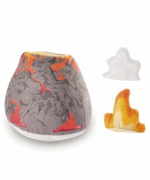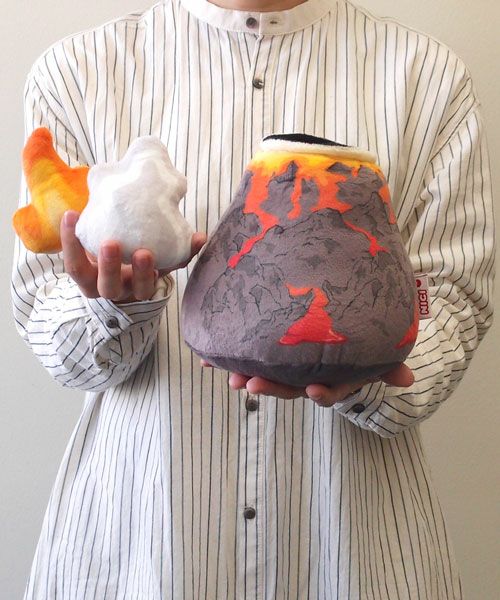 こちらは、火山をモチーフにしたぬいぐるみです。付属の蒸気と炎を付け替えできます。