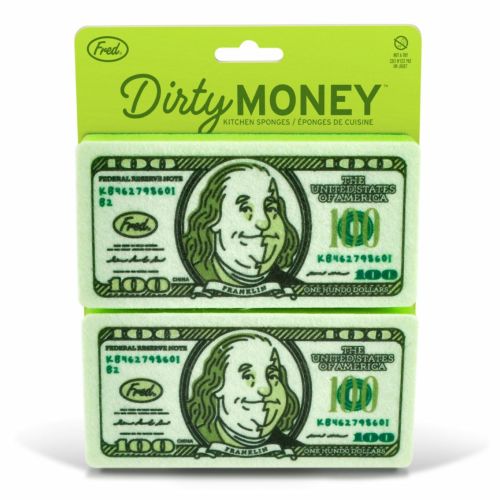 汚金!?洗っちゃえば綺麗でしょ! ブラックジョークなネーミングのお札型スポンジ2個セット! 洗うものによって両面使い分けましょう。 ちょっとしたギフトにもおすすめです。