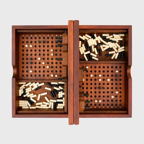 交互にポイントを言い合って、全5船の場所を当てる戦艦ゲーム。 木製で高級感ある仕上がりです。遊ばない時は箱に収まります。