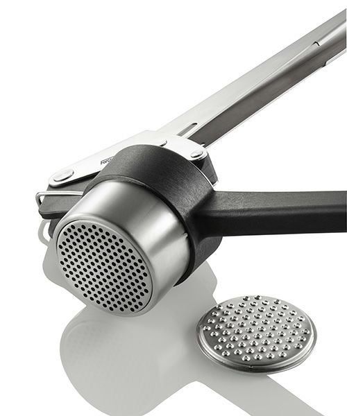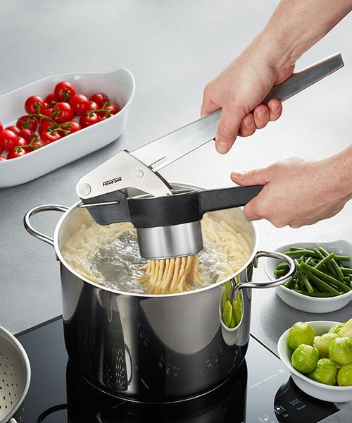 ジャガイモ、ピューレ、パスタ作りなどの料理にオススメです。 生地を作って、FORCE ONEに入れ、形を形成しながら鍋でそのまま茹でることができます。 食材を入れてレバーを押すだけで簡単に調理できます。 二種類の穴の大きさのパンチディスク付きです。 ディズクを取り外せるので洗う際にも困りません。 フック付きなので収納にも困りません。 食洗機を使用できます。