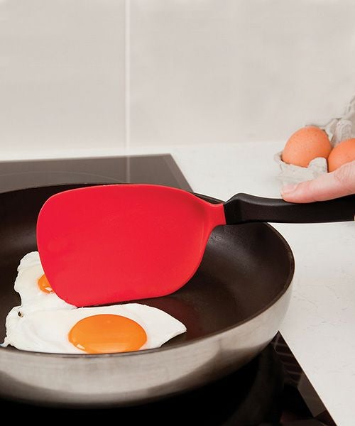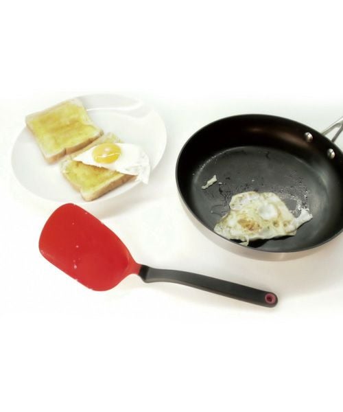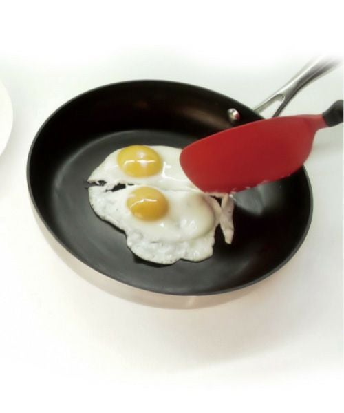 フライ返しとしてはもちろん、調理、盛り付け、カットもできて万能。置いても調理台が汚れないので手放せません。餃子用に、今までは無○良品の大きなフライ返しを使っていたのですがこちらの方が上手く返せて不要になりました。赤い色もテンションが上がります。