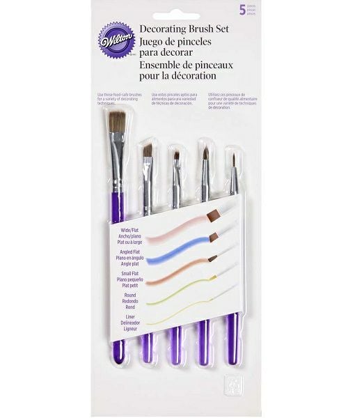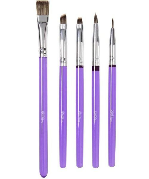 カラーダストをガムペーストフラワーにダスティングしたり、アイシングのステンシルをするのに便利な細めのブラシ5本セット。