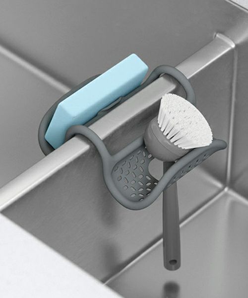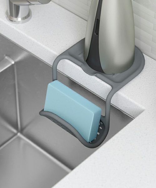 シンクや、カウンターの端に合わせて曲げることができる収納アイテムです。 水場でも滑りにくいように出来ており、排水用の穴があいています。 収納用の穴もあいているので、長さのあるブラシなどを掛けておくことができます。 清潔に保つ為、定期的に本体を暖かい石けん水ですすいで下さい。重量:100g