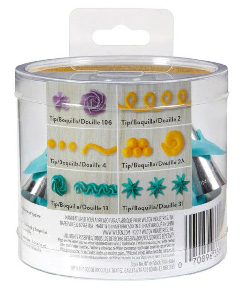 #2,#4,#13,#31,#106,#2Aの6種類が入った、クッキーデコレーションに最適な口金のセット。食洗器用ホルダーがついているので、そのまま食洗器にも入れることができ、保管も便利です。