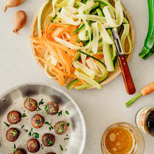 KOKIRIKI(コキリキ)は、フランス製の100%植物由来のプラントベースフードブランドです。 長年にわたりプラントベースフードの研究を続けてきた機関が、その成果を結集して開発した製品をお届けしています。 主な原材料には、エンドウ豆、ミレット(雑穀)、アカシア、チコリ、キャッサバ(マニオク)、大豆、ジャガイモ、大根など、自然の恵みを活かした素材を使用しています。 一般的な大豆ミートと違い、豆の臭みや独特の食感を取り除いた「食べやすさ」がKOKIRIKIの最大の特徴。たんぱく質は大豆・エンドウ豆から成分抽出し、さらにタケノコやチコリを加えることで、まるでお肉のような弾力と繊維感を実現しています。健康とサステナブルを両立した、次世代の食生活をサポートします。 【特徴】 ■動物性原料は一切使っていません。 ■フランス製 ■100%植物由来 ■ヴィーガン協会認定 ■ 保存料不使用 ■ニュートリスコア(栄養スコア)Aランク ■高たんぱく質 ■地球にやさしい ■使いやすい小分けパック ■糖類ゼロ アレルギー成分:小麦 【利用シーン】 和洋中どれでもOK!「臭みナシ&高再現」な次世代プラントミート KOKIRIKIは半加工品のため、自由な味付けで様々な料理にお使いいただけます。使い勝手の良い150〜200gの小分けパックで、和・洋・中どんなジャンルにもアレンジ自在です! ●和・洋・中どんな料理にもアレンジ自在!毎日の食卓に ●家族みんなで楽しむ週末ディナーに ●忙しい日のヘルシー時短メニューに ●お子さまのお弁当やおやつにも ●栄養とサステナブル、どちらも叶える食卓に 【お召し上がり方】 フライパンに少量の油を入れ十分に熱し、本品を入れます。中火で約11分間、裏返しながら調理します。 お好みでソースなどと合わせてお楽しみください。 ※上記の調理方法は一例です。オープン・レンジ等でも調理可能です。 【名称】ベジボール 【原材料】エンドウ豆たんぱく、小麦たんぱく、たけのこ繊維、チコリ繊維、植物油脂(菜種油、ヤシ油)、米粉、食塩、カラメル/増粘剤(メチルセルロース)、着色料(アセロラ果汁、アカピートジュース、ニンジンジュース、カラメル色素)、香料(一部に小麦を含む) 【栄養価成分】(100g当たり) 熱量 178kcal/たんぱく質 18g/脂質 7.6g/炭水化物 9.3g/食塩相当量 0.87g 【内容量】 150g×8個入り 【保存方法】-18℃以下 【原産国】フランス 【冷凍前の加熱の有無】無し 【加熱調理の必要性】加熱してお召し上がりください。 ※こちらの商品は冷凍食品です。クール便で配送いたします。 【取り扱い上の注意】 ●調理後、商品は熱くなっておりますので、やけどに十分注意してください。 ●解凍後は品質が落ちますので再凍結しないでください。 ●必ず冷凍庫(-18℃以下)で保管してください。 ●開封後はお早めに召し上がりください。 ●外装箱、内装袋はそのまま調理器具に入れないでください。 ●ご家庭の冷凍庫は温度変動が大きいので、ご購入後は賞味期限内であってもなるべくお早めに召し上がりください。 ●使用する機器、環境により焼き加減が変わりますのでご了承ください。