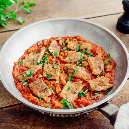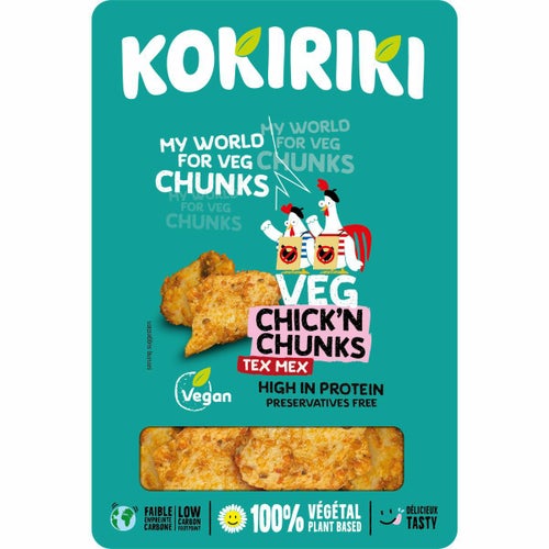 KOKIRIKI(コキリキ)は、フランス製の100%植物由来のプラントベースフードブランドです。 長年にわたりプラントベースフードの研究を続けてきた機関が、その成果を結集して開発した製品をお届けしています。 主な原材料には、エンドウ豆、ミレット(雑穀)、アカシア、チコリ、キャッサバ(マニオク)、大豆、ジャガイモ、大根など、自然の恵みを活かした素材を使用しています。 一般的な大豆ミートと違い、豆の臭みや独特の食感を取り除いた「食べやすさ」がKOKIRIKIの最大の特徴。たんぱく質は大豆・エンドウ豆から成分抽出し、さらにタケノコやチコリを加えることで、まるでお肉のような弾力と繊維感を実現しています。健康とサステナブルを両立した、次世代の食生活をサポートします。 【特徴】 ■動物性原料は一切使っていません。 ■フランス製 ■100%植物由来 ■ヴィーガン協会認定 ■ 保存料不使用 ■ニュートリスコア(栄養スコア)Aランク ■高たんぱく質 ■地球にやさしい ■使いやすい小分けパック ■糖類控えめ アレルギー成分:小麦 【利用シーン】 和洋中どれでもOK!「臭みナシ&高再現」な次世代プラントミート KOKIRIKIは半加工品のため、自由な味付けで様々な料理にお使いいただけます。使い勝手の良い150〜200gの小分けパックで、和・洋・中どんなジャンルにもアレンジ自在です! ●和・洋・中どんな料理にもアレンジ自在!毎日の食卓に ●家族みんなで楽しむ週末ディナーに ●忙しい日のヘルシー時短メニューに ●お子さまのお弁当やおやつにも ●栄養とサステナブル、どちらも叶える食卓に 【お召し上がり方】 冷蔵庫で解凍をしてください。 フライパンに少量の油を入れ十分に熱し、本品を入れます。約5分間、何度か返しながら調理します。 味付きなので調理後そのままお楽しみいただけます。 【名称】ベジチキンチャンク テクスメクス 【原材料】大豆たんぱく、植物油脂(菜種油、ひまわり油)、コーンスターチ、食塩、トマト、食酢、赤とうがらし、パプリカ、コリアンダー、クミン、ホワイトペパー、ニンニク、ナツメグ、青とうがらし、しょうが、タイム、カルダモン、オレガノ、メース、タバスコ/増粘剤(キサンタンガム)、抗酸化剤(ビタミンC)、香料(一部に大豆を含む) 【栄養価成分】(100g当たり) 熱量 150kcal/たんぱく質 18g/脂質 7.3g/炭水化物 3g/食塩相当量 1.3g 【内容量】 150g×8個入り 【保存方法】-18℃以下 【原産国】フランス 【冷凍前の加熱の有無】無し 【加熱調理の必要性】加熱してお召し上がりください。 ※こちらの商品は冷凍食品です。クール便で配送いたします。 【取り扱い上の注意】 ●調理後、商品は熱くなっておりますので、やけどに十分注意してください。 ●解凍後は品質が落ちますので再凍結しないでください。 ●必ず冷凍庫(-18℃以下)で保管してください。 ●開封後はお早めに召し上がりください。 ●外装箱、内装袋はそのまま調理器具に入れないでください。 ●ご家庭の冷凍庫は温度変動が大きいので、ご購入後は賞味期限内であってもなるべくお早めに召し上がりください。 ●使用する機器、環境により焼き加減が変わりますのでご了承ください。