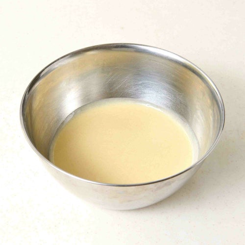 ③ ボウルにミックス粉、生クリーム、卵を入れ、ハンドミキサー(または泡だて器)で約3分間、生地が滑らかになるまで混ぜ合わせる。