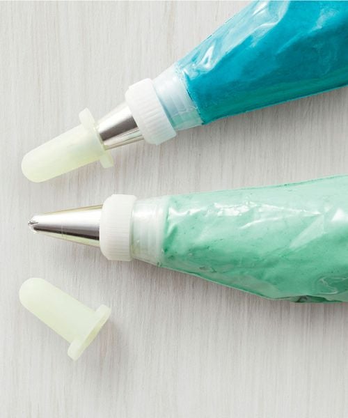 クリームの乾燥を防ぐために、口金の先につけるキャップ。大小2サイズ入りなので、口金に合わせたサイズで使用します。