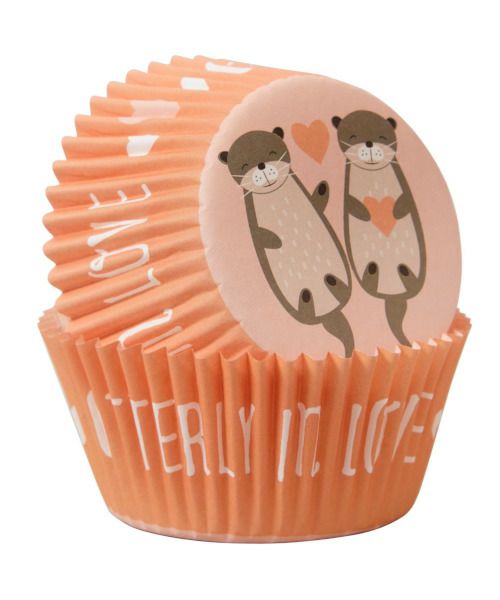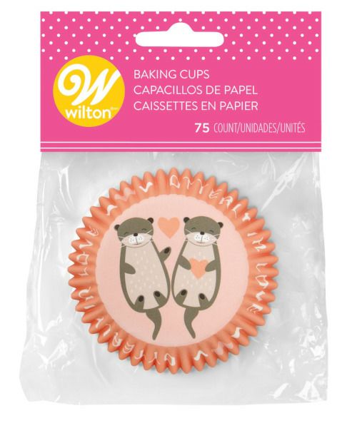 ラッコ柄の紙製マフィンカップ。Φ5cmのウィルトンレギュラーマフィンパンにセットし、ケーキ生地を流しこんだら、オーブンで焼くことができます。空焼きしないように注意してください。