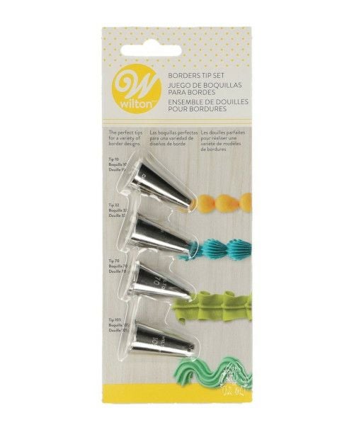 裾飾りにピッタリの模様にクリームを絞ることができるチップのセット。#10、#32、#70、#105の4種類が入っています。