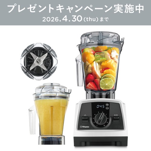 期間中、バイタミックス本体をご購入の方に、蜂蜜やマヨネーズなども残さずピタッと計量できる「計量カップ(非売品)」、作り置き料理などの保存ができる「Ziploc® コンテナ 4pcs(非売品)」、バイタミックスを使用した「作り置きレシピブック(非売品)」をプレゼントいたします。