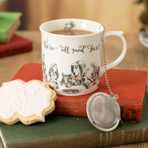 この楽しいハイティーセットでノスタルジックなワンダーランドへの旅に出かけましょう。どんなティータイムにも目を引くファインチャイナマグは、アリスがハッターのティーパーティーで描かれ、アイコニックな引用「we're all mad here」で仕上げられています。