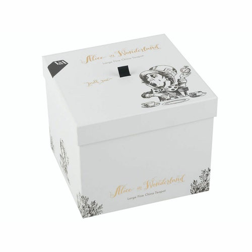 この素敵なアリス・イン・ワンダーランドティーポットで、ノスタルジックなワンダーランドへの旅に出かけましょう。ティーポットは、長持ちする丈夫さと美しさのためにファインチャイナで作られています。マッドハッターのお茶会でのアリスを描いた白黒のイラストが表面を飾っています。これらはアリス・イン・ワンダーランドのカードゲームにインスパイアされたもので、さらにそれはサー・ジョン・テニエル(1820-1914)によるオリジナルのアートワークに基づいています。ゴージャスなデザインに贅沢な仕上げを加えるゴールドのディテールがあり、アイコニックな「Drink Me」の引用が蓋を飾っています。マッチングのギフトボックスに詰められ、引っ張ると製品が現れる「Pull Me」タブがついています。これは有名な物語のファンに最適なアリス・イン・ワンダーランドのギフトです。または、このシリーズで利用可能なマグ、カップ、その他の食器を選んで、独自のアリス・イン・ワンダーランドティーセットを作成してみてはいかがでしょうか?