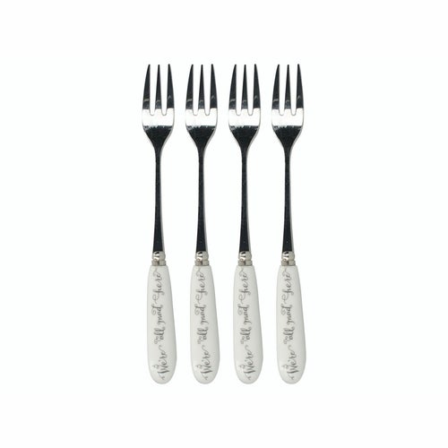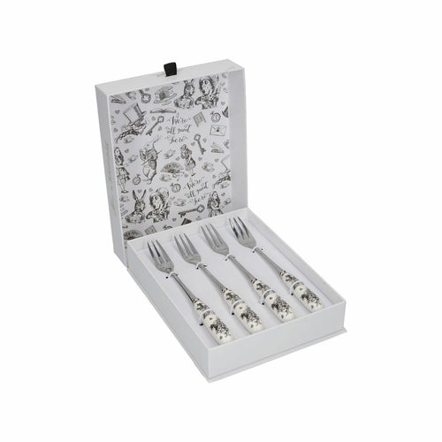 平凡な午後のティータイムの枠を超えて、エレガントな『アリス・イン・ワンダーランド』ペイストリーフォークのセットであなたのティータイムを異世界的なものにしましょう。それぞれの美しいステンレススチールのペイストリーフォークには、白黒のイラストが飾られたエレガントな磁器のハンドルがついています。