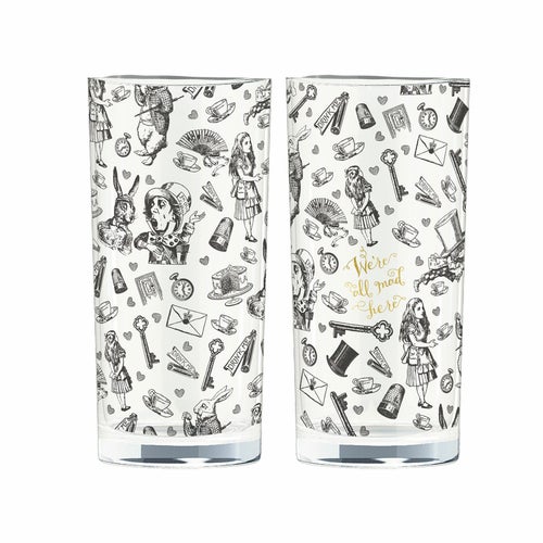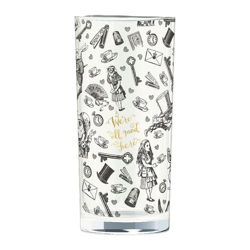 V&Aのアリス・イン・ワンダーランドコレクションから、ハッターのティーパーティーにインスパイアされたハイボールグラスで、爽やかな飲み物を啜りましょう。これらのグラスには、アリス、ハッター、ホワイトラビット、ティーカップ、鍵、懐中時計の白黒のイラストが飾られています。デザインは、サー・ジョン・テニエル(1820年 - 1914年)のアートワークに基づく『アリス・イン・ワンダーランド』のカードゲームに触発されています。ハッターの有名な引用「We're all mad here」は、複雑なプリントに映えるゴールド色のディテールで仕上げられており、グラスの上部を飾るゴールドのリムと相まっています。冷たいソフトドリンクを提供するのに最適なこれらのドリンクグラスは、エレガントで目を引くものです。朝食時にオレンジジュース、昼食時にコーディアル、ディナーパーティーの際には水を提供するのにも使用できます。