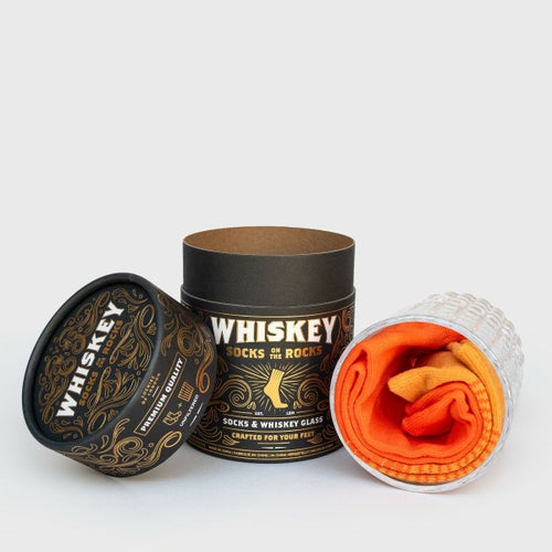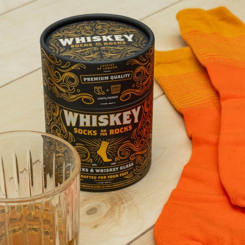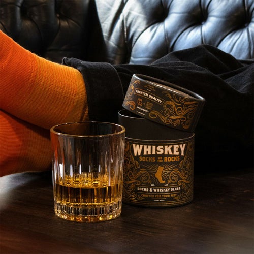 ロックグラスと、まるでウィスキーみたいな色のソックスがセットになったセット!思わずびっくりしちゃう?!ロックなアイテムです。