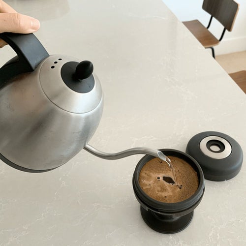 Palmpressワンプレス・コーヒードリッパーは、 初心者でも気軽に本格的なコーヒーを楽しめるコーヒードリッパーです。 エアロプレス方式で、抽出します。 〇コーヒー特有の濃厚な舌触りを楽しめる! 金属製フィルターなので、オイルがフィルターに吸収されずに抽出される為、 よりコクや深みを感じる濃厚な舌触りになります。 また、容器にコーヒー豆とお湯を入れ、全体を浸してじっくりと抽出するため、 コーヒー豆そのものの味わいを、より強く味わうことができます。 〇持ち運び簡単!コンパクトなコーヒードリッパー パームプレスはコンパクトでシンプルなデザインです。 おうちはもちろん、アウトドア・オフィス・旅行での使用にぴったり。 〇フィルター要らずで簡単&サスティナブル ポッド・交換用ペーパーフィルター要らずで楽々コーヒーを淹れることができます。 廃棄物が出ないので、サスティナブルです。 〇分解して隅々までお掃除可能! パームプレスは細部まで分解可能!日常的にお掃除して、清潔に保てます。 フィルターカップとブリューウィングカップを温水と食器用洗剤で洗浄してください。