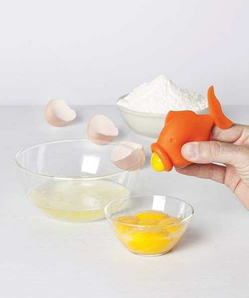 卵の黄身だけ吸いとるぞ! これは一体なにに使うんだ?! 答えは卵の黄身だけを吸い取って卵白を分けるときに大活躍するエッグセパレーター。 まるで魚が黄身を食べてるみたいでしょ。 サイズ:W95xD40xH65mm 素材:シリコン樹脂 made in China