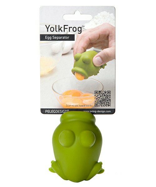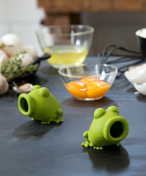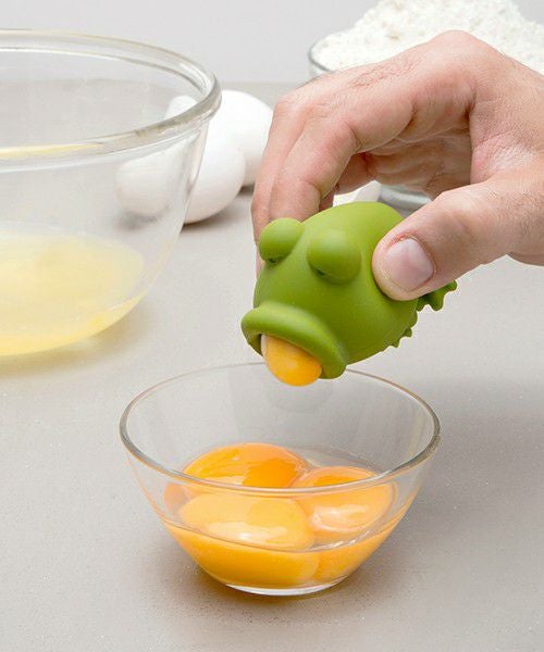 卵の黄身と白身を分けるすぐれもの! カエルの体を押したまま、口の部分に黄身をつけて吸い込みます。