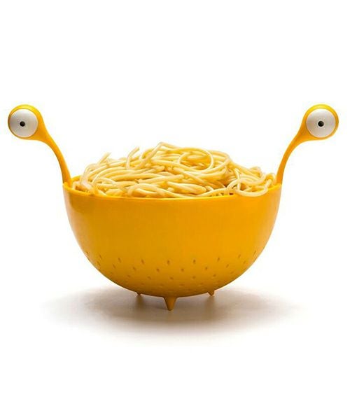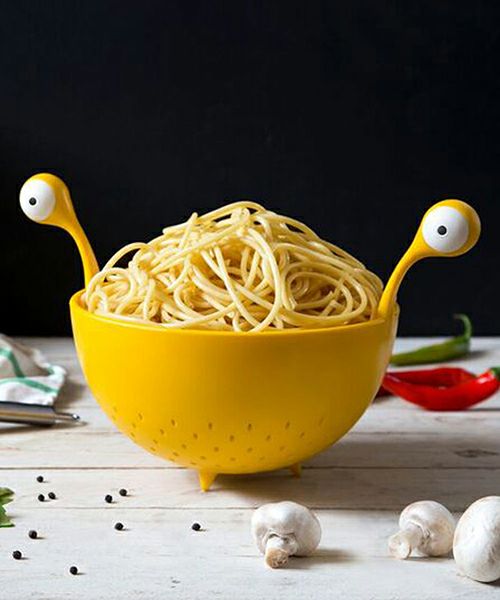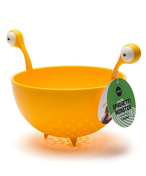 キッチンモンスターがやってきた。 水切り用のザルかと思いきや目がギョロっとしたモンスター!! 目の部分を持ち手にも出来ます。 取扱上の注意:火のそばに置かないでください。ご使用の前に中性洗剤で洗ってください。 電子レンジNG、食洗機OK 耐熱温度:120℃