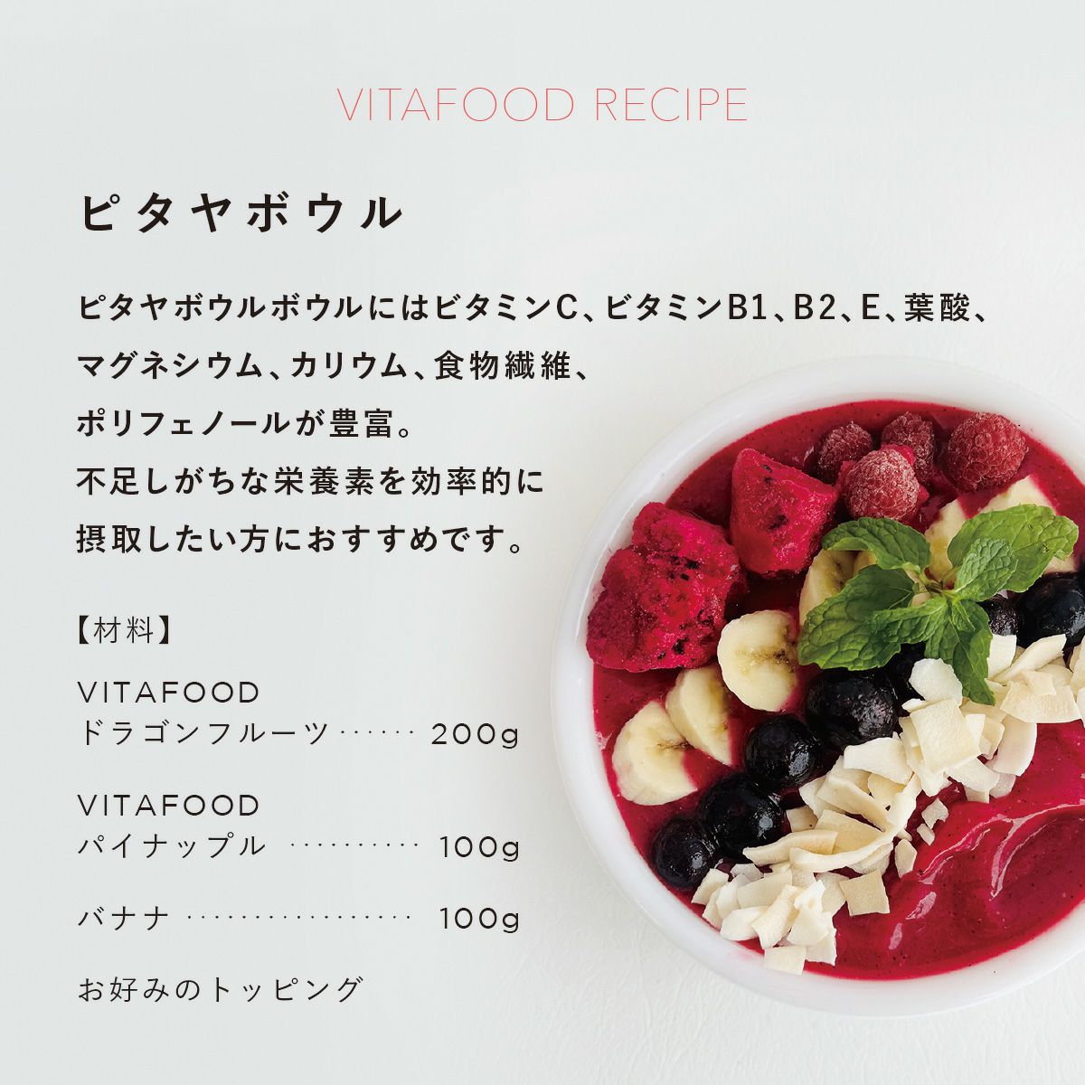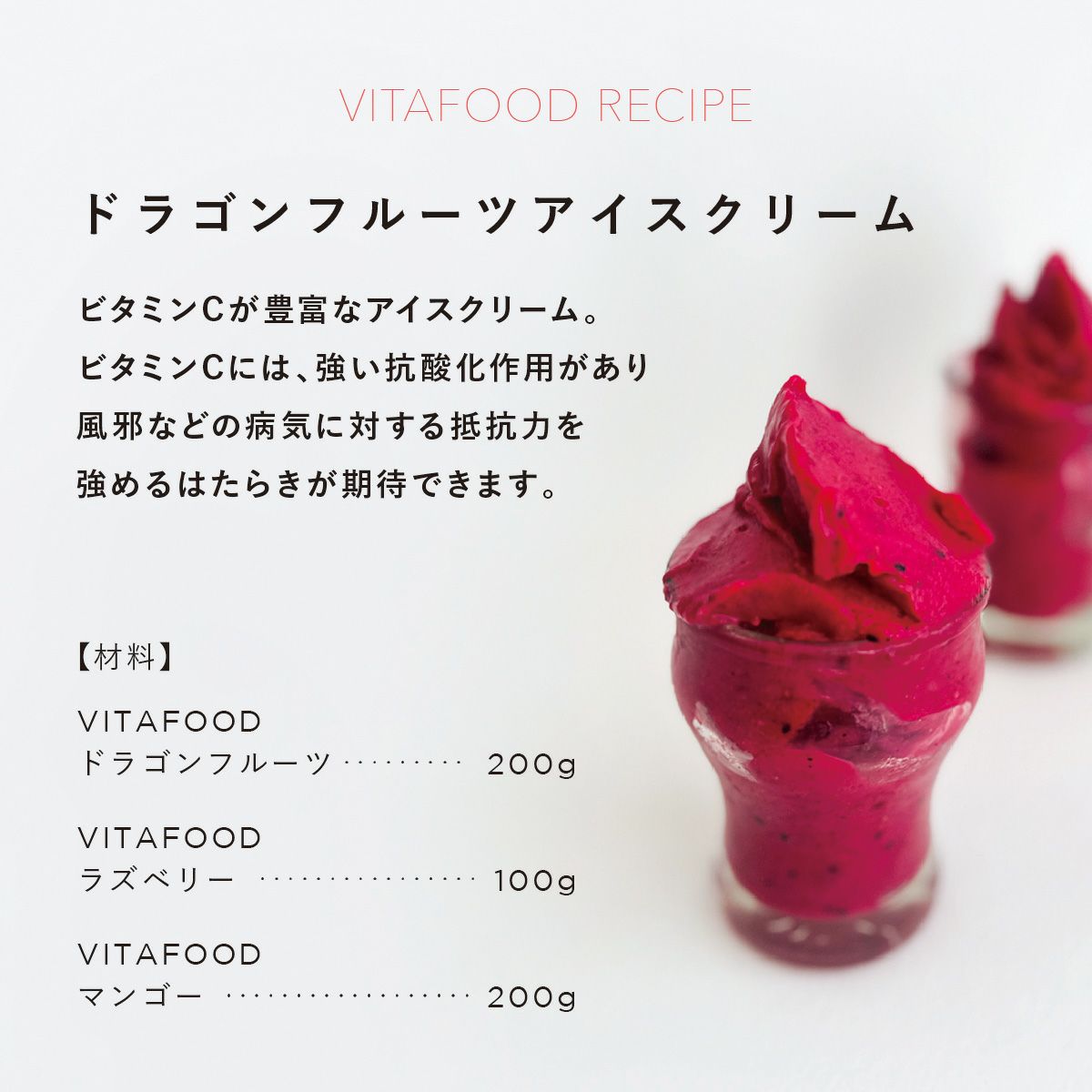 VITAFOOD(バイタフード)冷凍ドラゴンフルーツは、果実が熟したときに収穫され、その風味と栄養素を保存するために急速冷凍されます。