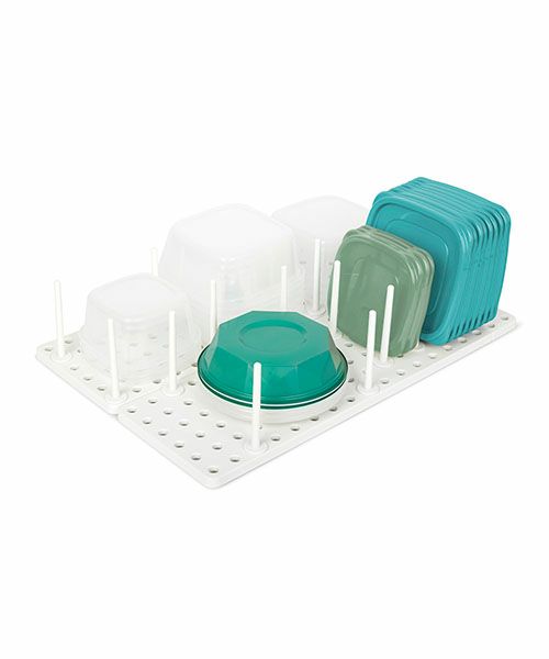 ペグ(仕切りの棒)が差さえの役割も果たして、食器や調理器具が倒れたり動いたりするのを防ぎます。