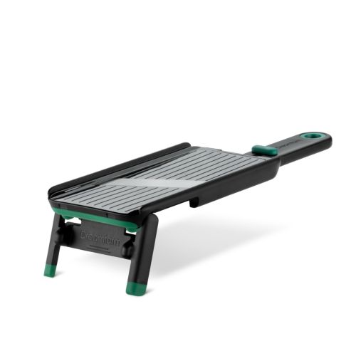 - 安心の指ガード:柔軟な指ガードが刃の上を滑り、安全にスライスできる構造です。