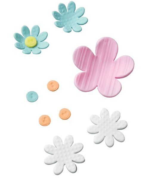 約7cmのフォンダン・ガムペーストの花を抜くことができるプレスセット。花芯はボタンの形でとってもキュート。