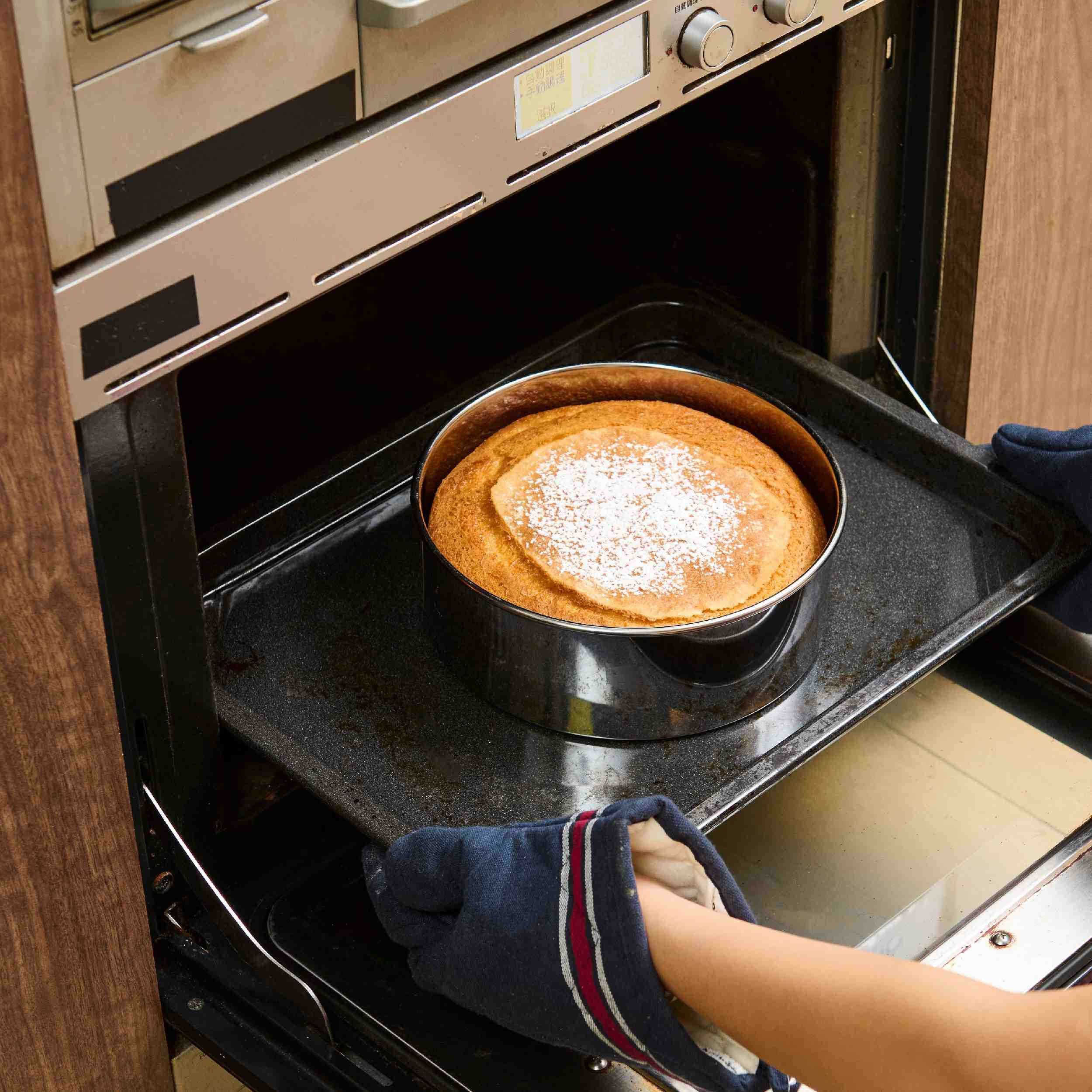 ⑥ 160℃に予熱したオーブンの中段で、約50~55分間焼成する。竹串を中心に差し込み、生地がくっつかなければケーキパンから取り出し粗熱を取る。