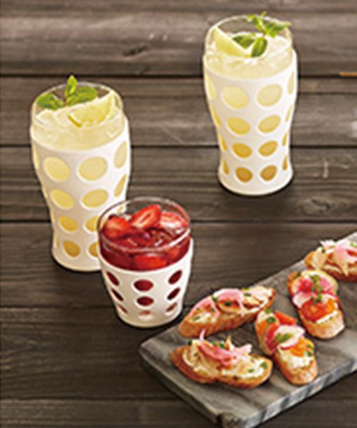 屋外でも使いやすい、シリコンカバー付きのグラスシリーズ。