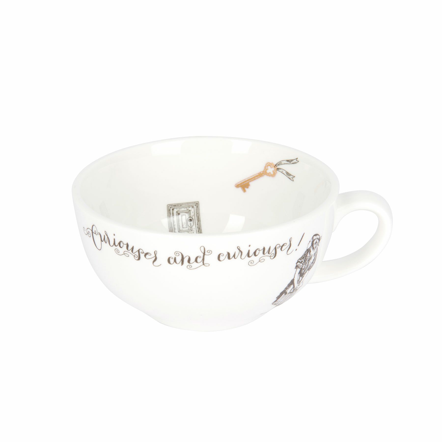 V&Aアリス・イン・ワンダーランドの「Tea for One」ティーポットとカップセットは、くつろいでリラックスするのに必要なすべてが揃っています。ミニチュアのファインチャイナティーポットは、広いリムのついたティーカップの中にきちんと積み重ねられ、可愛らしさとコンパクトさを兼ね備えたセットです。マッドハッターのお茶会のシーンが描かれています。これらはサー・ジョン・テニエル(1820年 - 1914年)のイラストに基づくアリスのトランプカードからインスパイアされています。「curiouser and curiouser!」という言葉が、目を引くルーピーフォントでティーカップを飾り、ハッターの有名な引用「we’re all mad here」が蓋を飾っています。各部品は輝くゴールドのディテールで美しく仕上げられています。