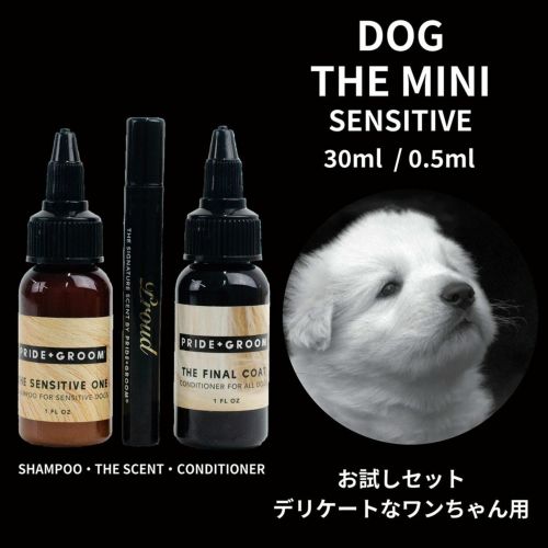 仔犬や、お年寄りのワンちゃん、入浴回数の多いデリケートなワンちゃん用のシャンプー、コンディショナー(各30ml)、ペットセント0.5mlのお試し用セット♪ PRIDE+GROOMの定番シャンプー・コンディショナー・ペットセントがお試ししやすいミニサイズになって登場! トラベルやちょっとしたギフトにもおすすめ♪ 【内容】 ・PRIDE+GROOM/ペットシャンプー センシティブ 30ml ・PRIDE+GROOM/ペット用コンディショナー 30ml ・PRIDE+GROOM/ペットセント 0.5ml 【使用上の注意】 本製品をペット以外に使用しないでください。 ペットの目や鼻、耳に入らないようにご注意ください。 お子様の手の届かない所に保管してください。 皮膚に異常や、ケガや傷がある場合は使用をお控えください。 皮膚に異常が現れた場合はすぐに使用を中止し、獣医師にご相談ください。