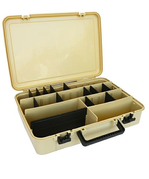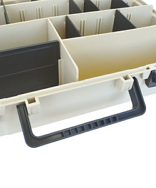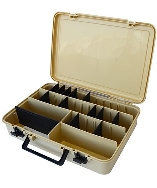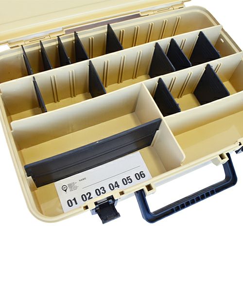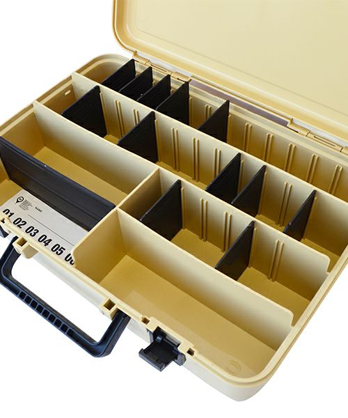 自在に仕切りの位置を変えることができる、ツールボックス。 アタッチケースのように持ち運び可能。 釣り具の整理、ネジなどの細かいパーツの整理、アウトドアのツール入れなどにお使いいただけます。 ・識別用ステッカー付き