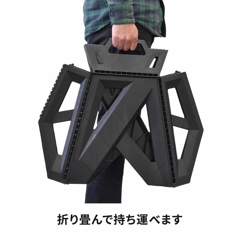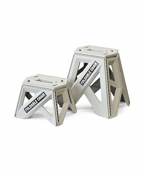 建築の骨組みを思わせるようなデザインが特長の折りたたみチェア。 座面の持ち手を持ち上げるだけで、自動でパタンと閉じてそのまま持ち運べます。 椅子や踏み台としてはもちろんですが、クーラーボックス置きにしたり、ちょっとしたテーブルにも使えます。 同じ高さのチェアを二つ並べて、サーフボードを置いたり、板を置いてテーブルにしたりと様々なシーンでお使いいただけます。 品質の面では、第三者機関での耐衝撃性・強度テストを実施。 耐荷重100kgで安心してお使いいただけます。