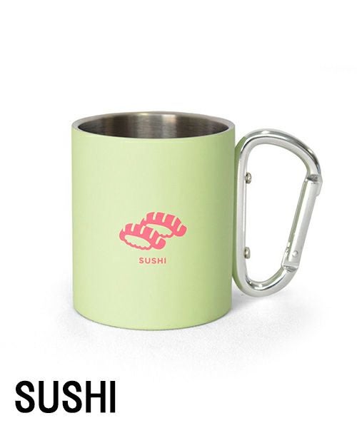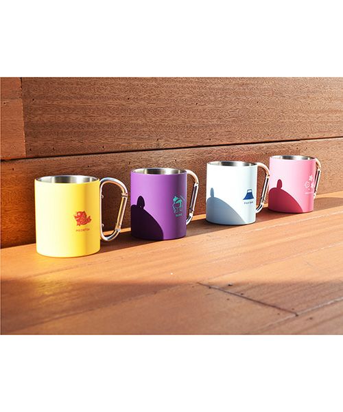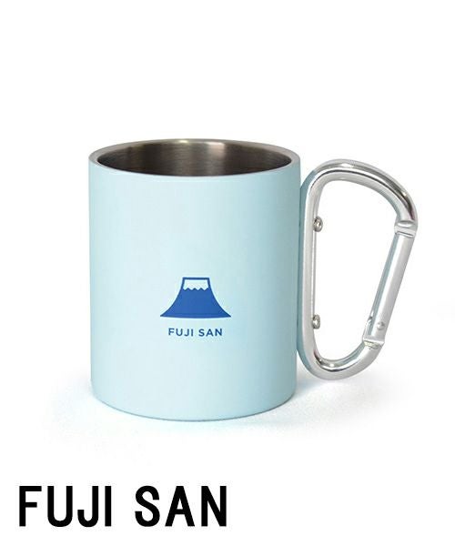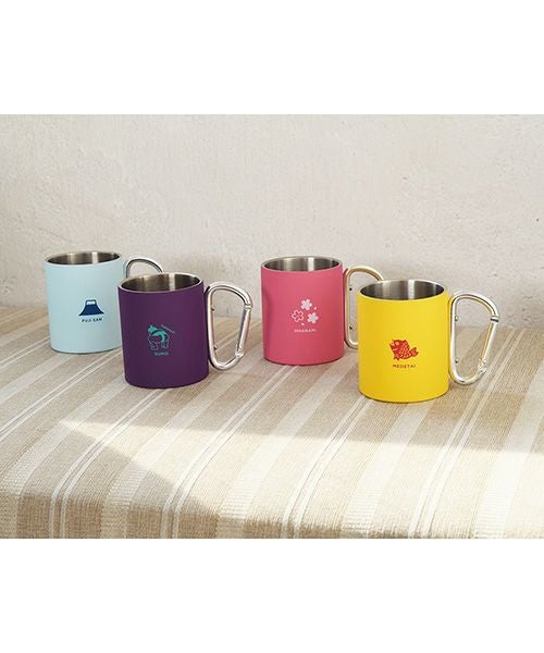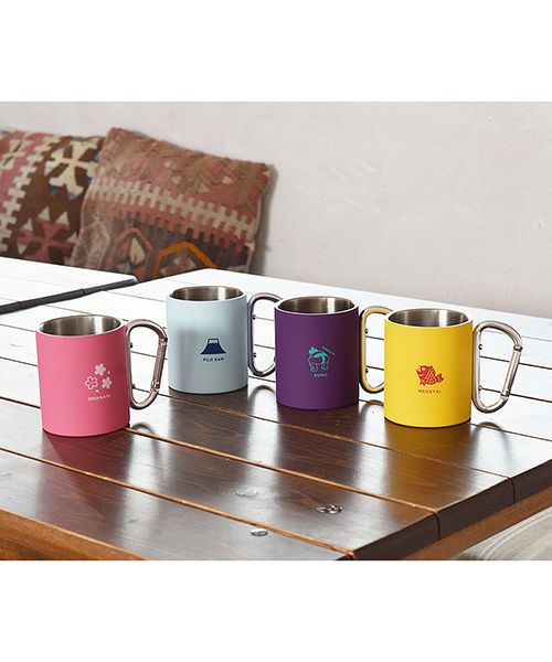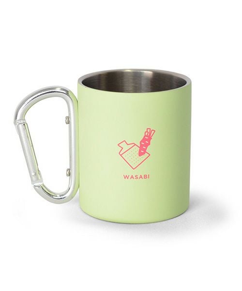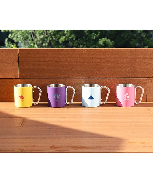 取っ手がカラビナ(開閉式フック)になっていて、いろんなところに引っ掛けることができるマグカップ。アウトドア用途はもちろん、壁に掛けてインテリアとしても。