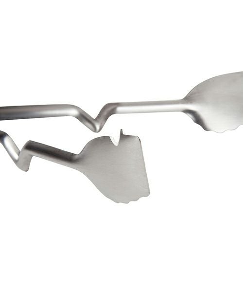ウェーブ形状で、置いても先端がテーブルに付きません。食材を取りやすく、ワンタッチで開閉できる構造になっているステンレススチールトングです。