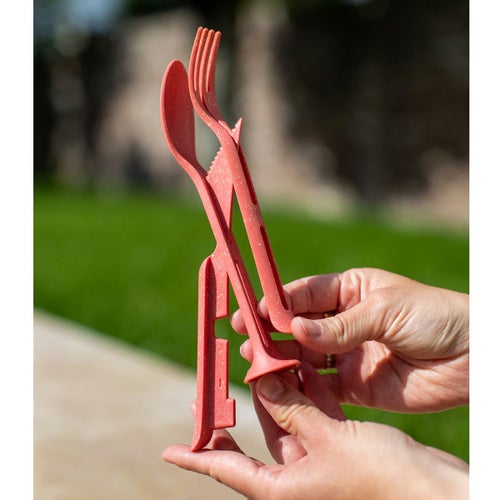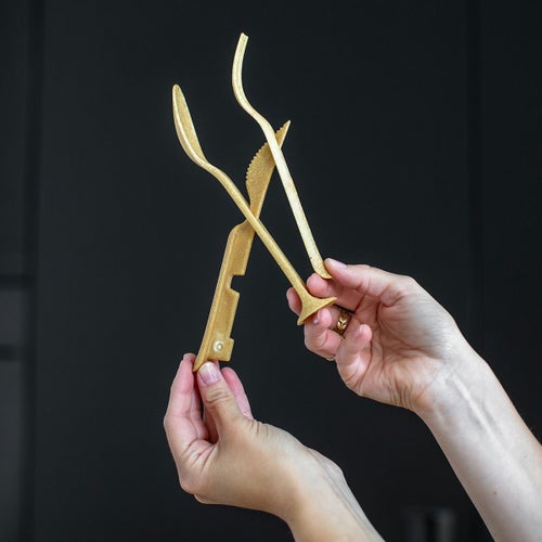 ポケットカトラリーセットはスプーン、フォーク、ナイフがコンパクトにまとまった持ち運びにとっても便利な仕様です。